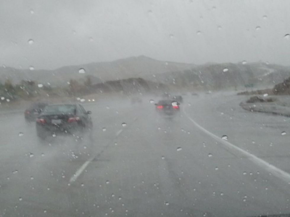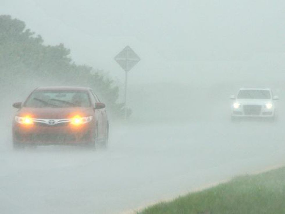 Your car is not broken, you are just scared. It's actually illegal in some states to have your hazards on when your car is in motion anyway. If you are scared of the rain, pull over and wait until it stops. Use your hazards for what they are actually made for.