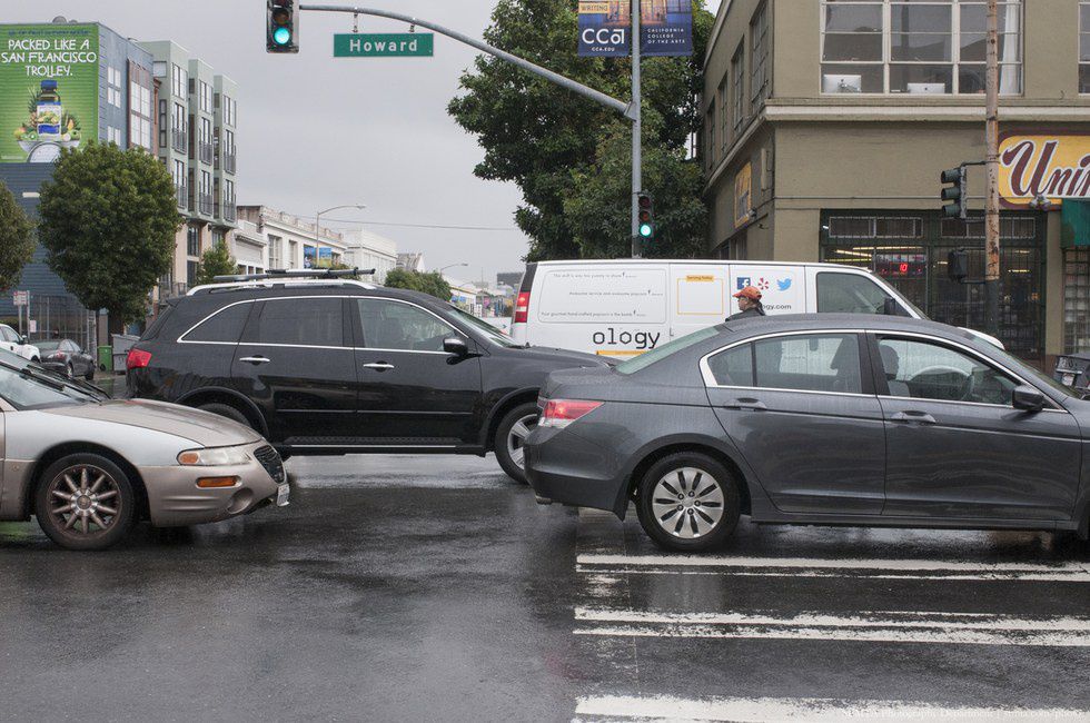 Why? Why? WHY? There is no reason to stop and roll about two miles an hour to turn right. I get it, you need to yield. However, if the light is green and the traffic is flowing, no one is going to be in your way while you turn.