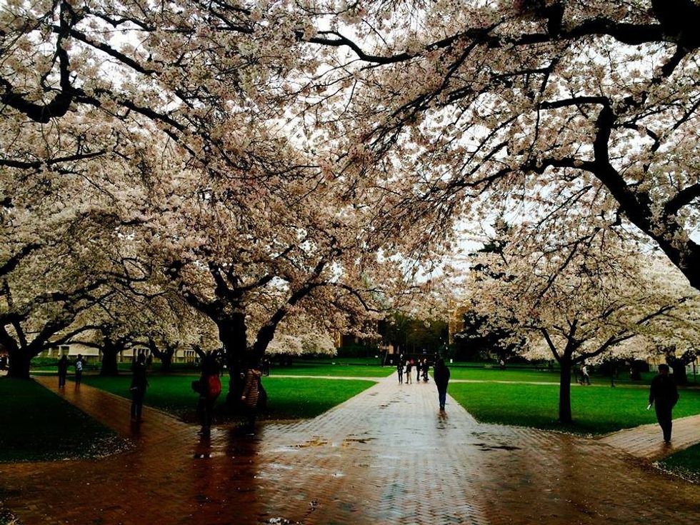 The famous UW quad is known for its beautiful cherry blossoms that bloom every spring, however the major puddles that emerge every time it rains are less recognized. Due to the old brick pathways, when it rains you better be ready to play hopscotch to avoid getting soaked.