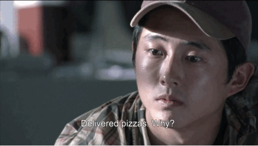 - That time we found out he literally was a pizza delivery guy before the apocalypse hit.