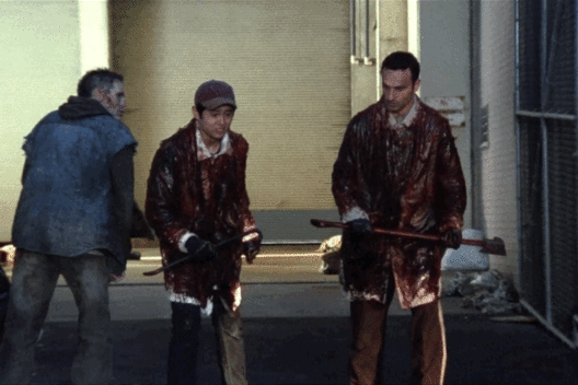 - When he and Rick covered themselves in disgusting guts from zombies to get across the city blocks.