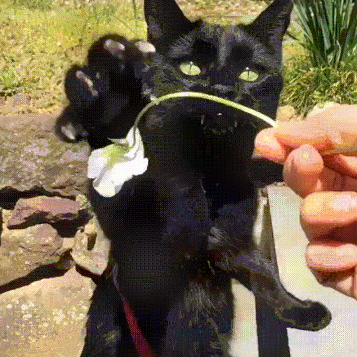 Cat sees flowers. Cat jumps in flowers. Need I say more?