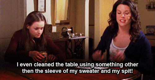 Cleaning is not at the top of the priority list for Lorelai. She doesn't waste all her time making sure the house is spotless when she can watch The Golden Girls and shop instead; with maybe a little bit of eating thrown in there.