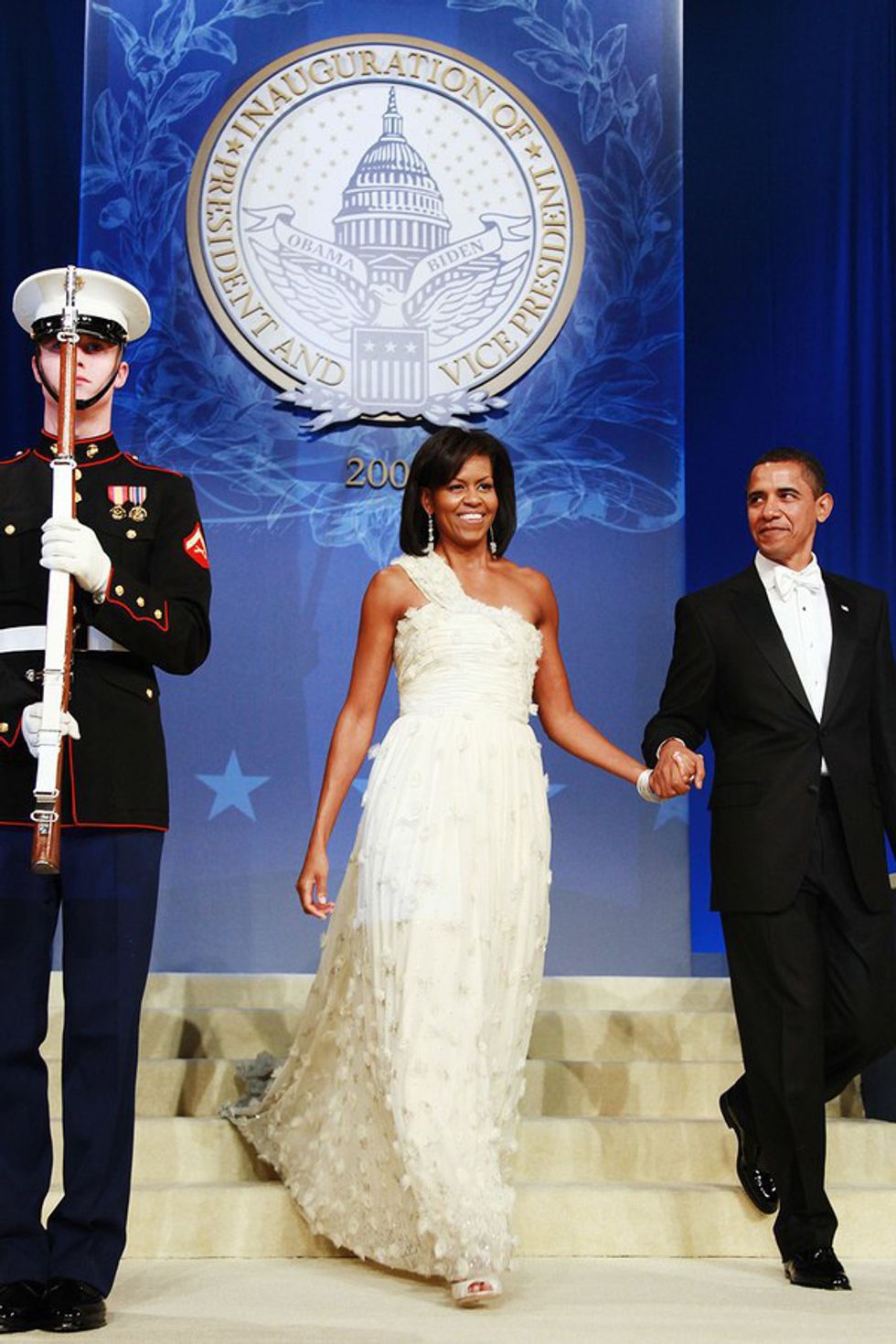 Fast forward to later that night where her Jason Wu white one shoulder gown wowed the crowd and this was one of many moments that kick-started Mrs. Obama's career as a fashion icon.