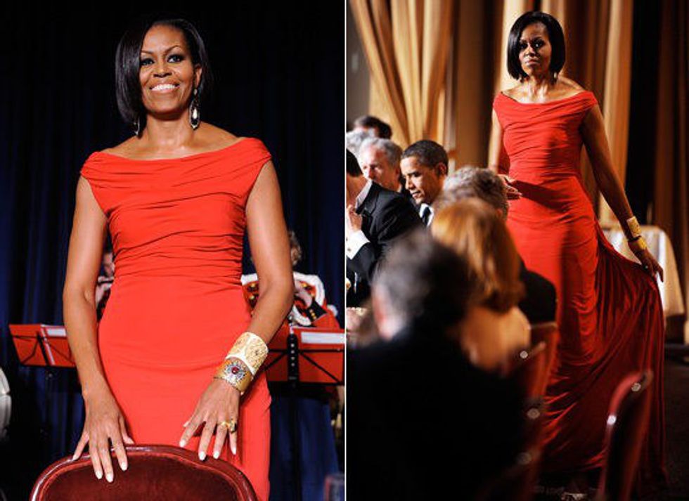 Doesn't Mrs. Obama look radiant in red? This Prabal Gurung gown was one of the top highlights from the Correspondents Dinner that night. Gurung told The Huffington Post, "I thought it would perfectly enhance the type of woman she is. It’s modern, not vulgar, very chic, very beautiful.”