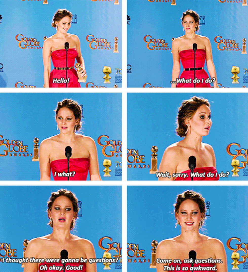 J. Law is basically one of the best people to walk this planet. She is also just like us, if you haven't noticed already. Whether it's eating food, being lazy or being confused all in one day, she is like all of us bundled up in one person. You should be proud.