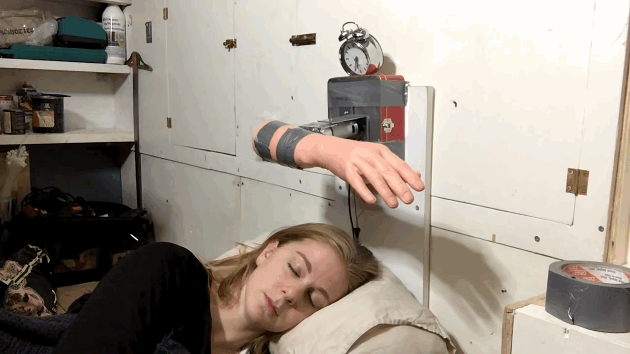 If you have the time and creativity, try this. After all, you know best how to wake yourself up for real, since you know the reasons why you hit the snooze button and fall back asleep. You might not want to create something as painful as this one, but you do want to make something that will get you out of bed.