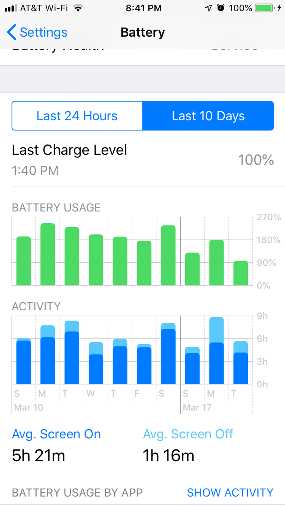 An appealing choice to many people to learn about their battery's health is to download an app to determine their battery's current state. However, some operating systems such as iOS are getting better about being transparent with a phone's battery health and showing battery trends, as seen above.