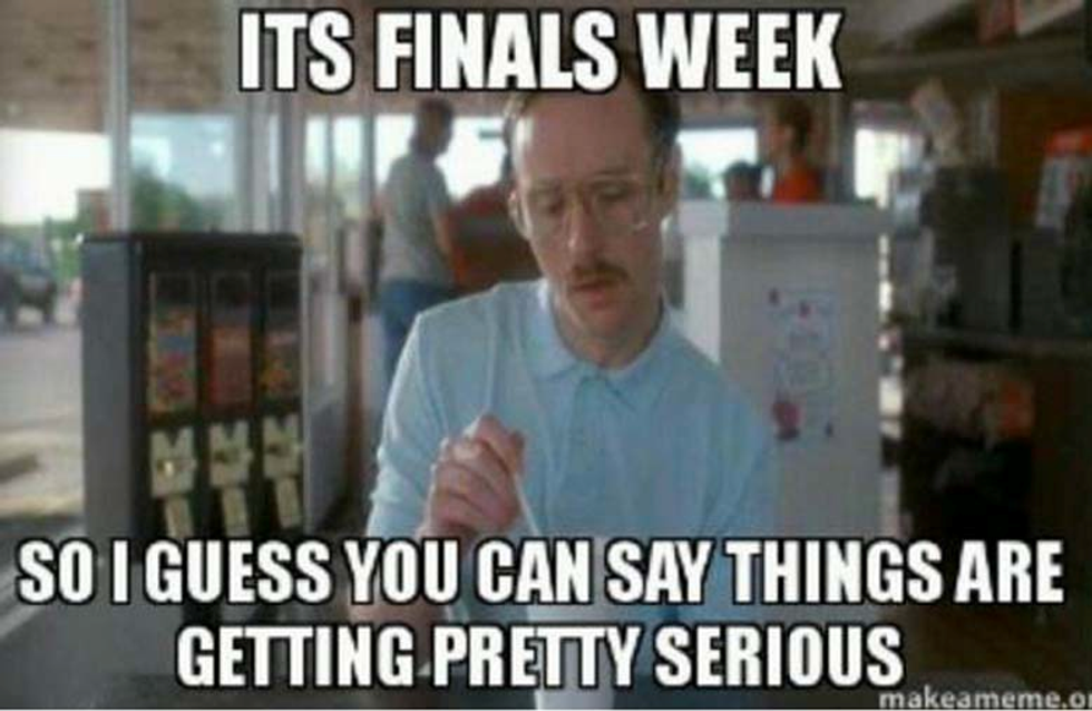 For some of us, finals actually start this week, before the official Finals Week starts. Maybe you've been lucky enough to have a professor that doesn't give a final, making your last test the last requirement for their class for the semester. Or maybe you haven't been so lucky, and all of your finals are scheduled back to back, only increasing the amount of stress that you're feeling as the semester comes to a close.