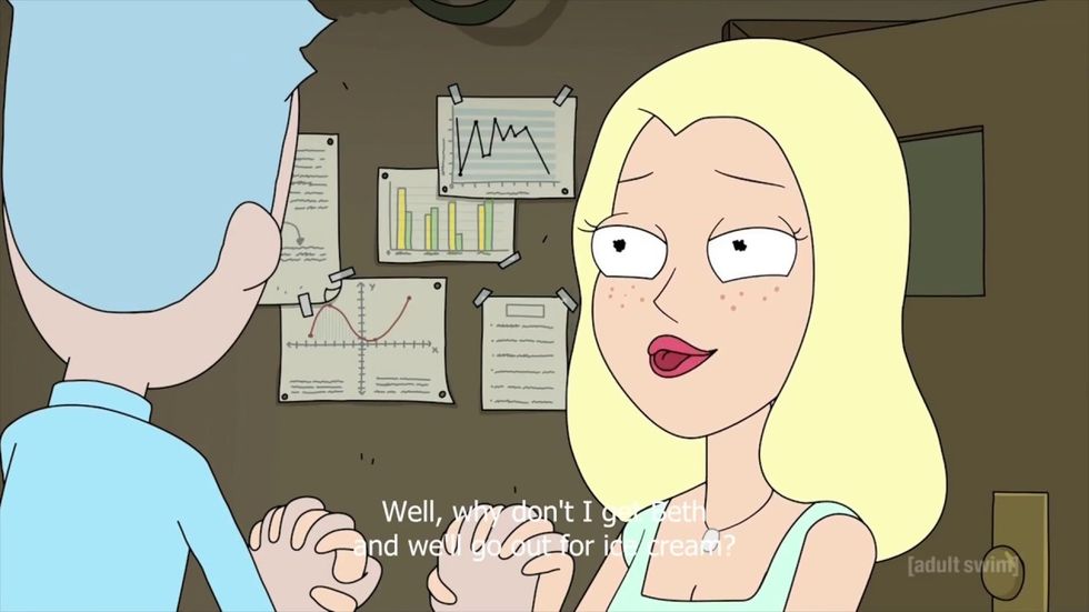 Love him, hate him--Jerry is our go to coward in the Rick and Morty universe. He runs away from fear most of the time and truly dislikes, even hates, Rick and Beth's attachment towards her father. In the end of the first episode of Season 3, Beth briefly takes a break from her relationship with Jerry.