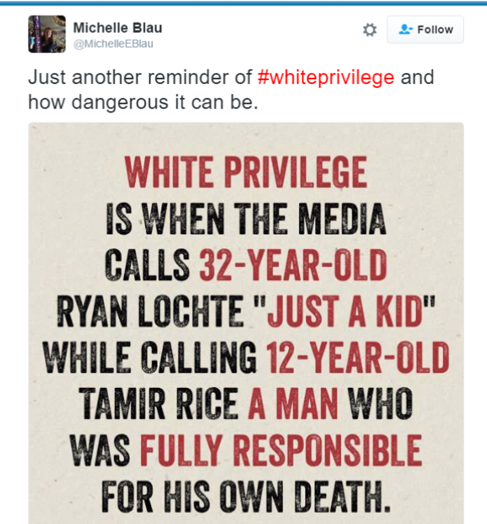 White privilege is being able to continue on with your life, despite committing a crime. POC, including children like Tamir Rice, are denied that right every day.