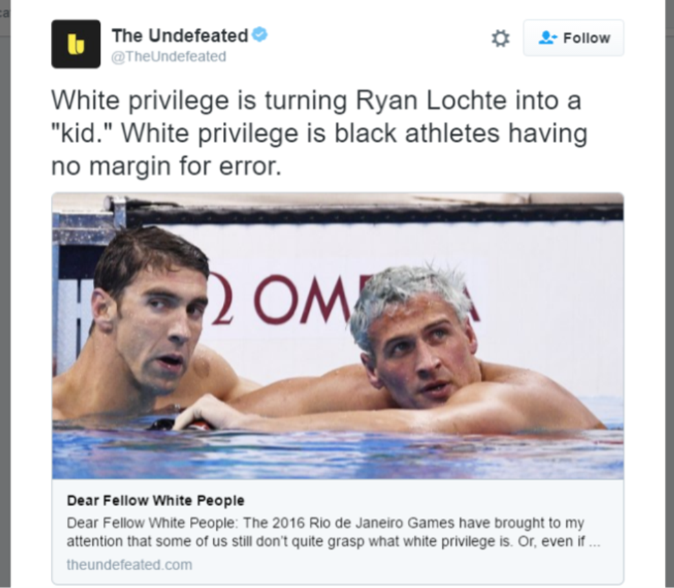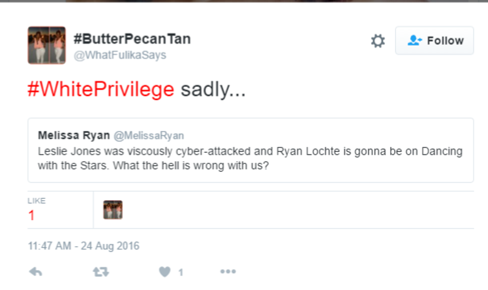 White privilege is being rewarded for bad behavior. While Lochte gets to be a dancer on DWTS, Leslie Jones has to constantly deal with people who bombard her with racist and sexist insults.