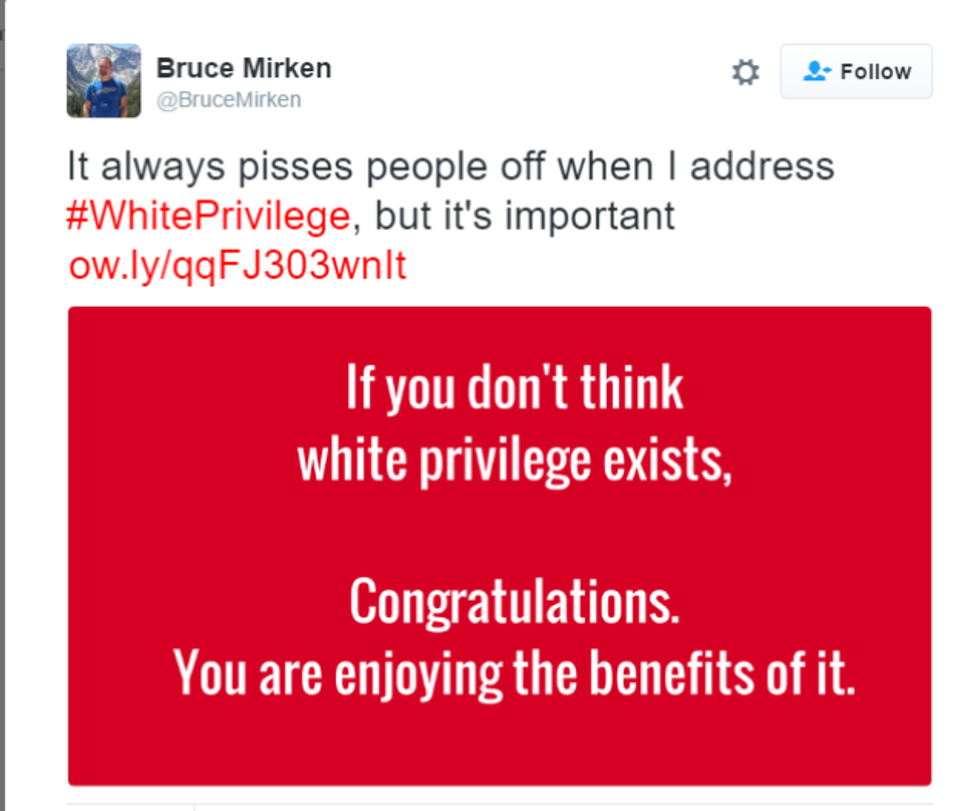 White privilege allows those who have it, to escape being critical of how they can use their privilege to their advantage.