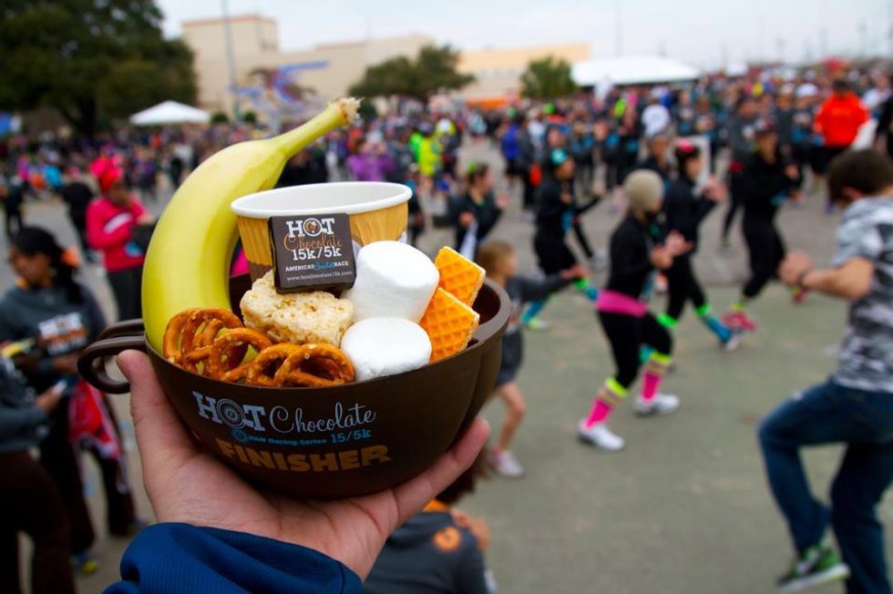 Unlike most runs, you don't have to wait until you cross the finish line to get your prize. Hot Chocolate 5K serves you delicious chocolate not only at the end of the race but along the course at designated sweet stations as well.