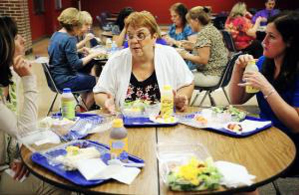 They are all at one table and you can tell that it is clearly the highlight of their day.