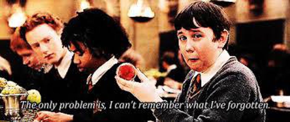 Forgetful Neville has probably been late to class every day this semester and has what seems like a valid excuse every time, but after a while everyone is convinced they are all made up. How can one screw up so much? On finals day they will come in and need to borrow a pencil and a piece of paper or two if there's an essay. Don't mistake the forgetful Neville for being careless, they care very much and will probably apologize a million times and guilt trip themselves throughout the week.