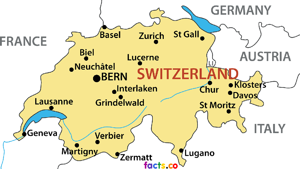 As you can see from the map below, the country is bordered by Germany, Austria, France, and Italy