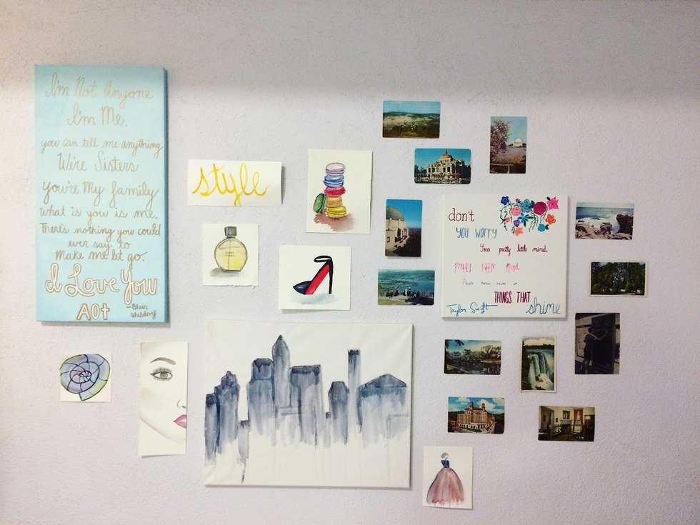 Here’s an example of a dorm here at Stephens. Katherine Craig has an adorable watercolor wall that most definitely livens up her room. It’s a fun project to do if you’ve been blessed with crafting skills (unlike me). It’s unique, and hopefully changes your mood when you glance at it. You can even add some of your favorite lyrics. Show off what you love so when your friends come over to your dorm, they’re super impressed and (hopefully) a little envious of your genius idea!