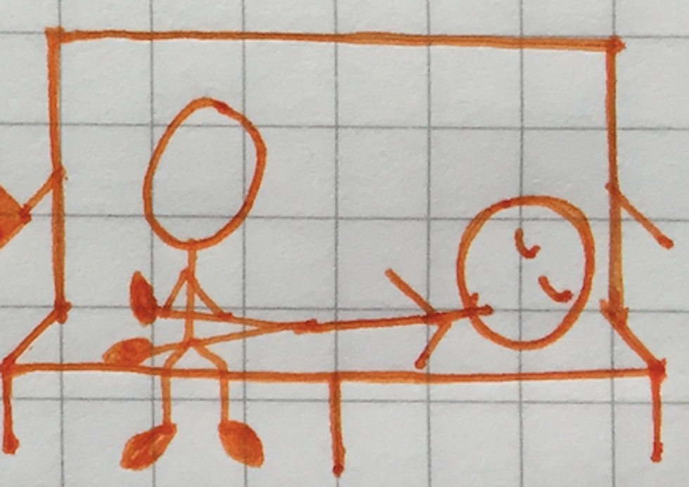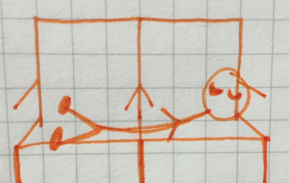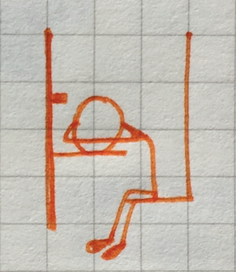 Another position that includes potential stranger contact, the Leg Logs position allows you to stretch your legs out straight. If you’re super lucky to have empty seats next to you, go ahead and use that extra space as a bed! If not, place them on a family member or friend–if they don’t mind. Or, perhaps a stranger’s?