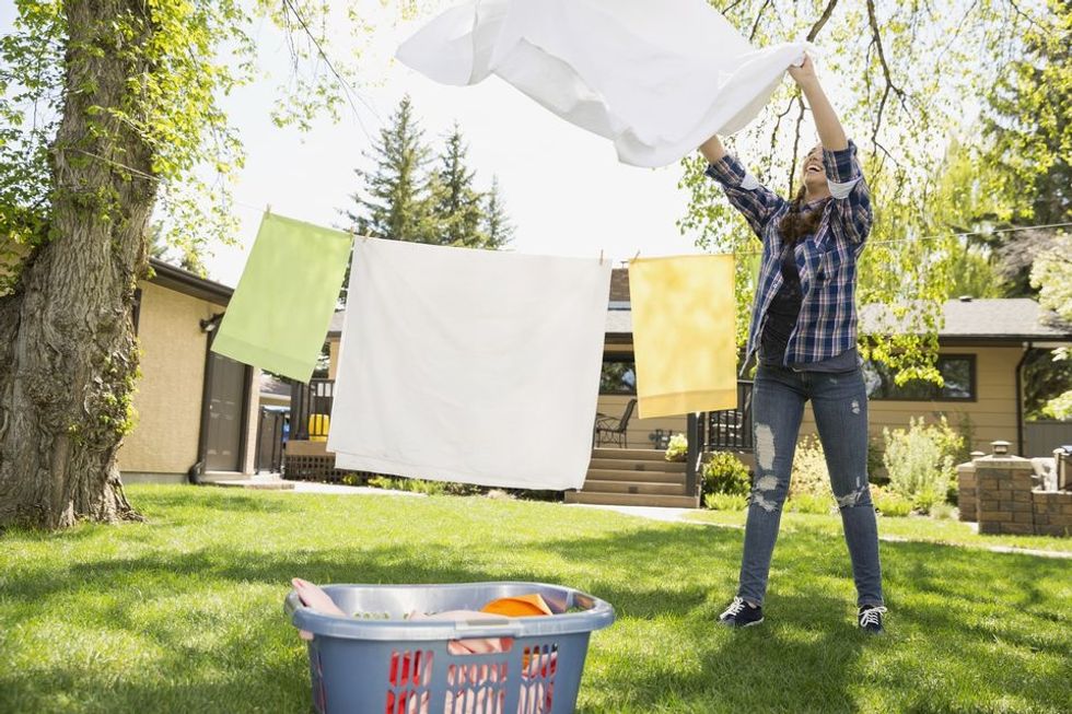 Some clothes, like jeans, don't necessarily need to be washed every time you wear them. Just hang your clothes out to air dry and cut back on the amount of water and electricity you use.