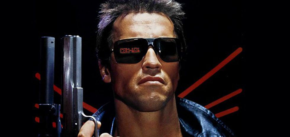A cyborg (Arnold Schwarzenegger) travels back in time to terminate Sarah Connor in an attempt to win a future war that her unborn son will otherwise lead to victory. However, the resistance also sends back a protector for Sarah, in which the two struggle to outsmart the machine and prepare themselves for the inevitable "Judgment Day," the war between humans and machines.