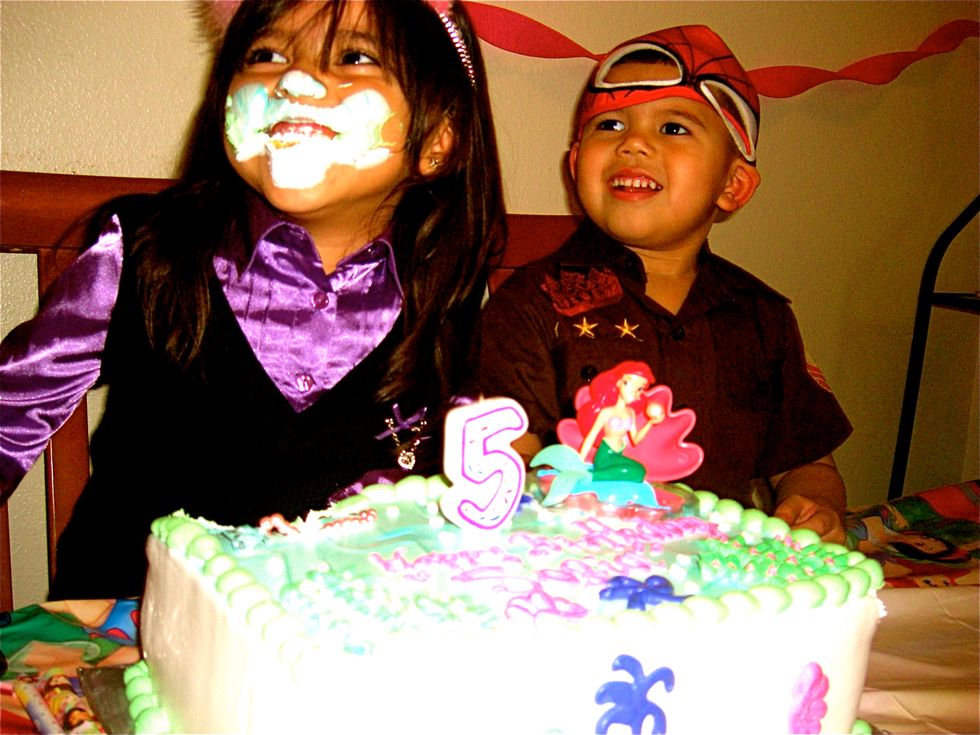 Cake frosting in one's nostrils becomes a birthday tradition if you're Mexican. We all know it's coming, yet we somehow are always caught off-guard and get our faces smashed into a small portion of the birthday cake. After the face smash ensues, we simply split off the demolished area of the cake and eat up!