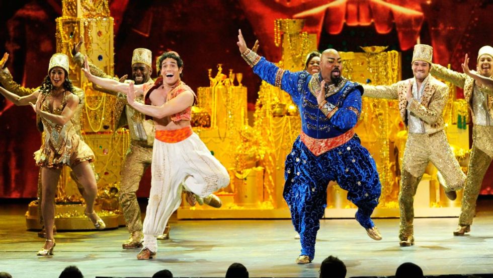 This is not a list of Broadway musicals without something Disney. There are many differences between the movie and the musical. Some differences include the new character of Aladdin's mother and the removal of Abu, Aladdin's monkey sidekick. I believe the Broadway version follows the same plot as the movie just with minor tweaks and new songs.