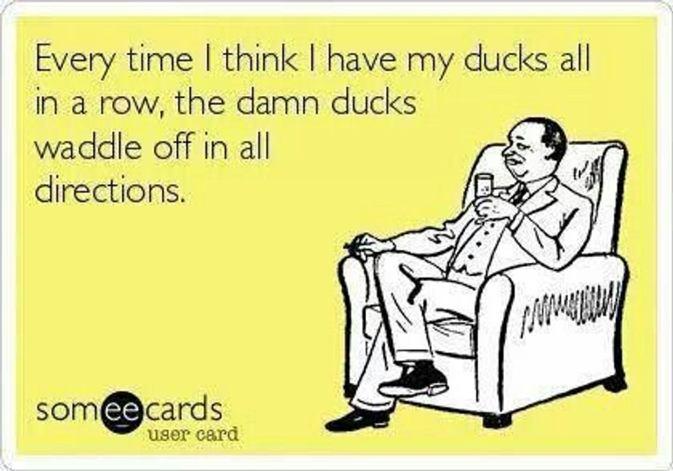You seem to always say classical, yet cheesy things like, "great minds think alike" and "get your ducks in a row."