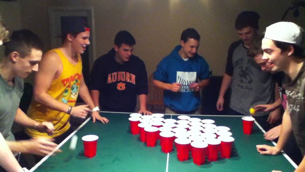 ... Or Four Corners... I've never actually played this game, but I've watched plenty of friends play it that it is a great game to contribute to party! Each side has at least two beer cans. Then each player throws a ping pong ball at the other side. If the ball hits the can the player that made the throw chugs their beer until the other team can touch toss the ball to each player on their team then touch it to the table.