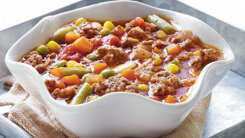 This meal takes about 35 minutes to cook and lasts for about 6 servings. A lot of the ingredients listed for this recipe are optional. You can really just buy a bag of frozen vegetables, cook them in a pot, and serve it over pasta. Choose a sauce, and enjoy! Here is a recipe you can refer to.