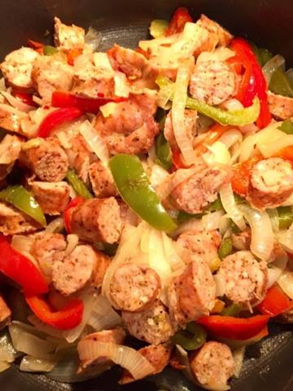 Prep time says 25 minutes but to me, actually, takes about 10. All you need to do is buy your preferred Italian sausage, peppers, and onions. Cut all of these up and throw them in a skillet. The sausage itself will give the vegetables a lot of flavors, but you can add more seasonings if you prefer! Check out this recipe here!