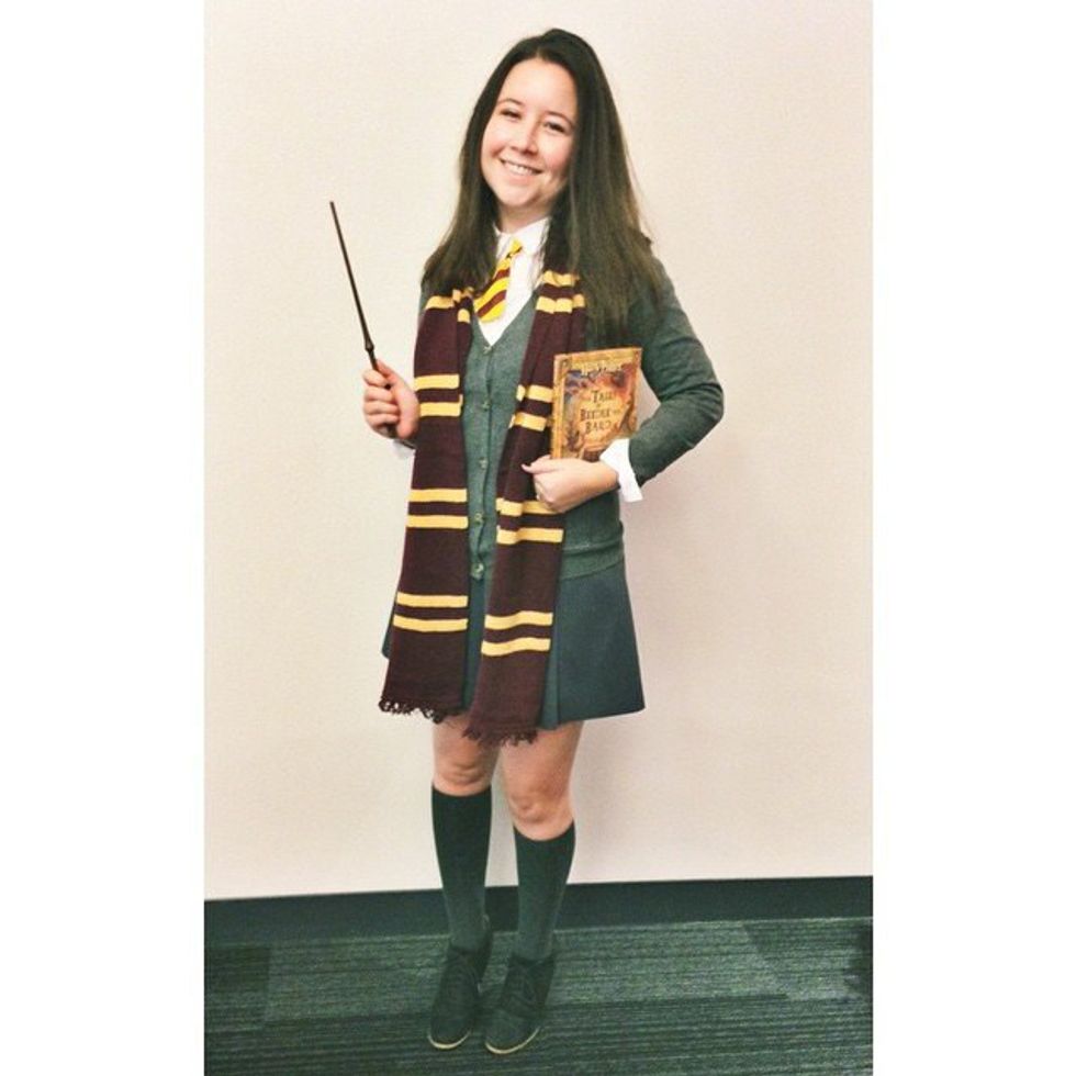 Let's be real - everyone is going to recognize a Harry Potter reference when they see one whether they have read the books/seen the movies or not. This can be easily achieved with a button-down shirt, a grey or black cardigan, and a grey or black skater skirt. Pair it with some knee high socks and some flats, Sperry's, Keds, Converse and the