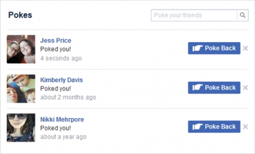 Before God invented Tinder, there was poking. Poking your crush was the easier way to let them know you were interested. And because they probably had like 50 other pokes, they just poked every single one back without giving it any second thought. And before you knew it you were in a poke war. And your entire relationship would consist of *poke* *poke* *poke* until one of you stopped poking back. Tragic. You probably also poked your friends to annoy the shit out of them and that’s something I think even people today can get behind. So what are you waiting for Facebook?