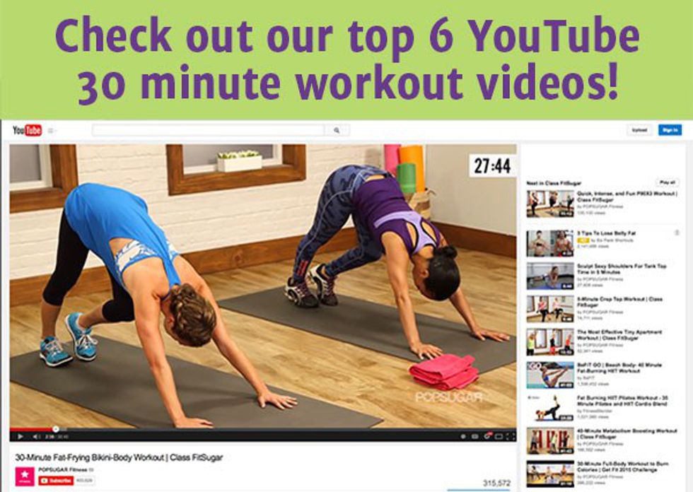 Find a 30-minute workout video on YouTube. Yoga, Body Bootcamp, Aerobic Dance, Cardio, or Zumba are just a few of the workouts you can find online.