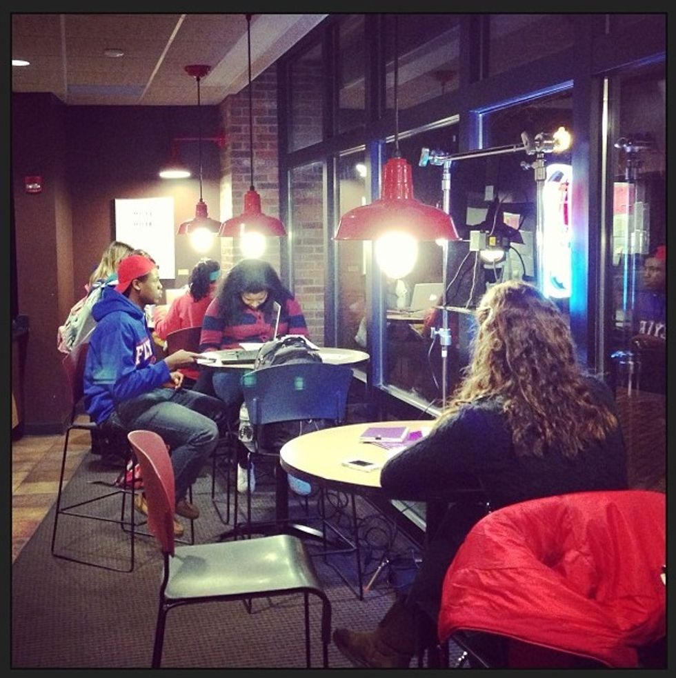 I cannot stress this enough, people! Don't study in your bed!!! I learned in one of my psychology classes that our minds begin to associate activities with locations. When we study or work in our beds we are training our minds to be awake and aware in that space. So, When it comes time to actually go to sleep in our beds, our minds start to go into working mode, and then it becomes harder for us to fall asleep in our own beds. Which leads me to my next study spot suggestion.