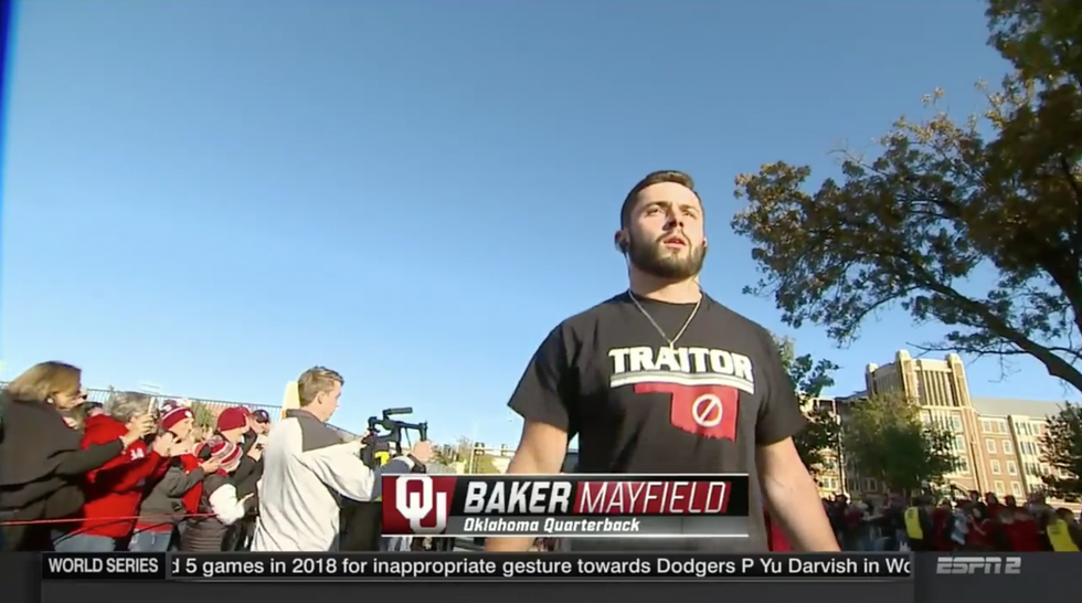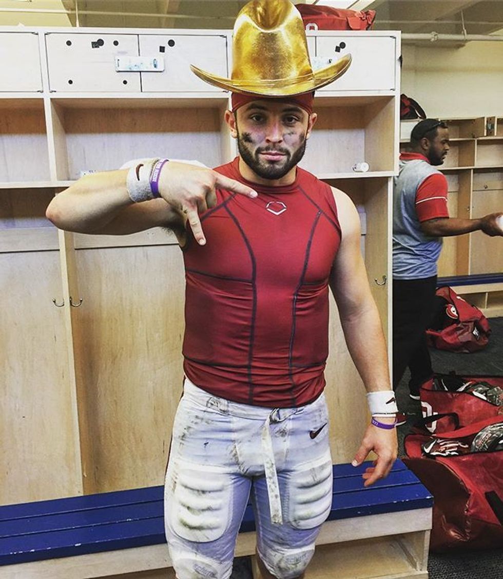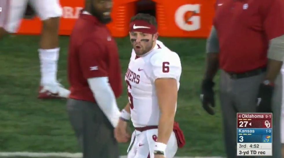 This last monday was the end of an era for Sooner Fans across the nation. It was the last game for Baker Mayfield to play as the Quarterback for the Oklahoma Sooners. We, and anyone else who has watched college football since Mayfield began his career at OU know how much he has made us laugh, scream, roll our eyes, and cheer that much louder for our favorite team. Baker Mayfield has become a legend in his own right for the Sooners and will remain as one of the greats for the Sooners for years to come. As he moves on with his career, here are ten moments from his awesome career as an Oklahoma Sooner.