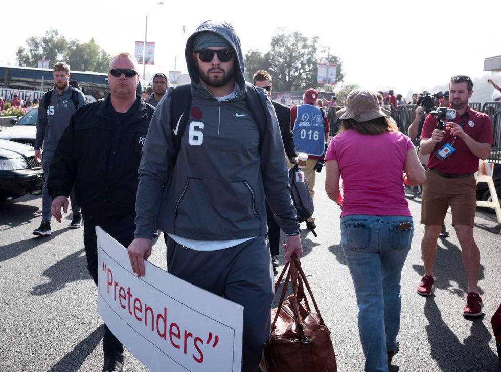 This is one of those that we wish had worked out better for us, but Sooner Pride was bursting when Baker arrived at the Rose Bowl with a sign that said "pretenders" after announcer Lee Corso on ESPN called the Sooners "pretenders". Oh man sweet revenge!