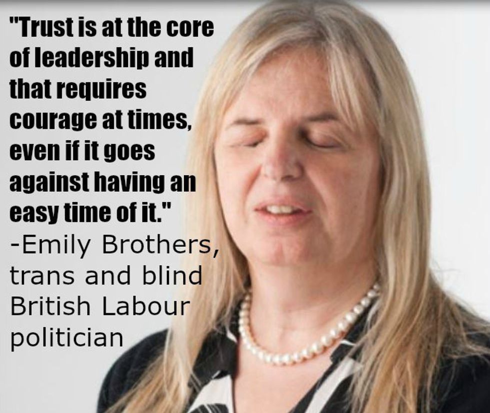 Brothers is the first openly transgender British candidate for Parliament in a major UK party. Along with being transparent about her past, she also lost her sight to Glaucoma as a child. She has pushed through every obstacle that she has been faced with and wants to make a difference in UK politics. Brothers is an incredible advocate for both the transgender and disabled communities. Her commitment to making change has not only inspired many others, but has also made strides in policy changes for both communities. She held a key part in securing Disability Living Allowance for those who are blind as well as advocating for equality in the UK. Although she does not identify as a representative for either the trans or disabled community, she pulls from her own experiences to help others.