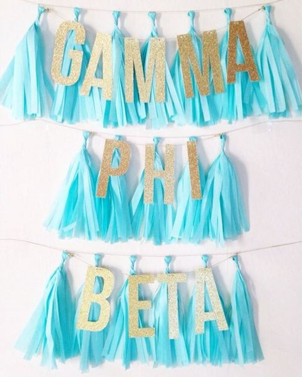 This wall decoration is easy to do and makes for an unexpected sorority touch without being too over-the-top