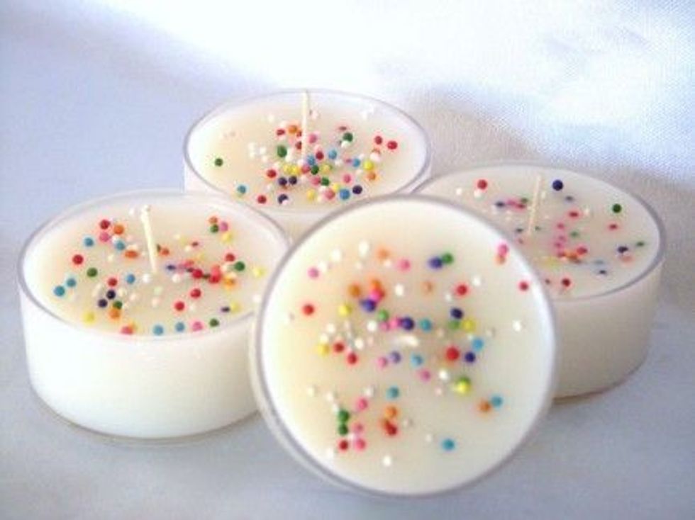 These candles are super-easy to make (just melt the wax and add sprinkles or glitter or whatever you else you like to the hot wax) and they look unlike any other gift anyone else is giving their little.