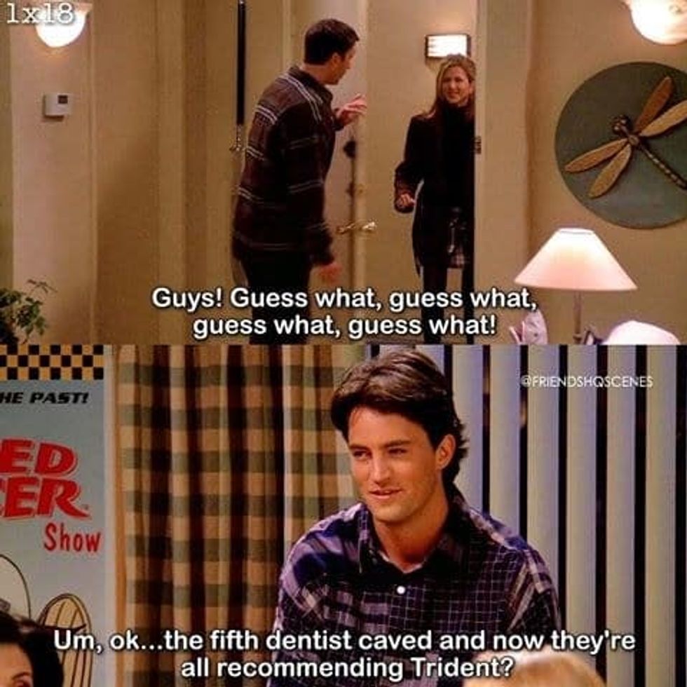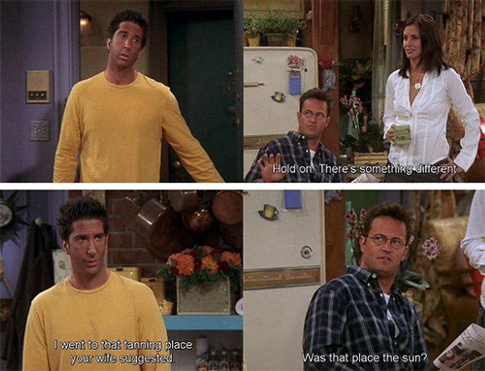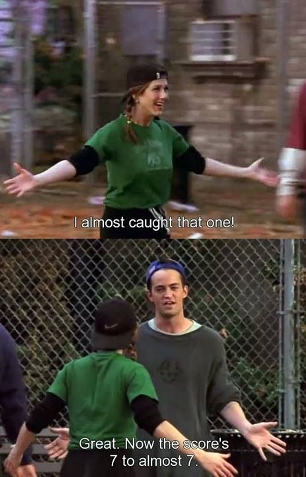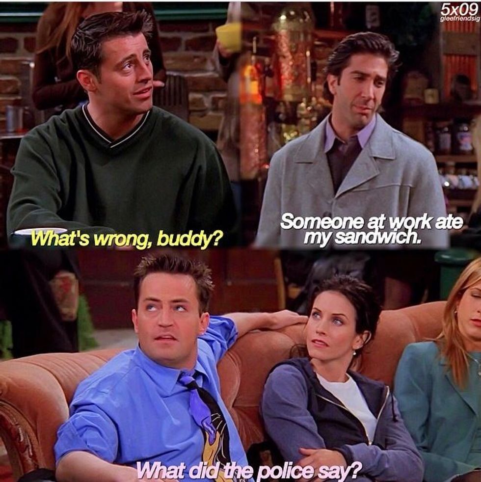 Friends was the heartwarming TV show in the 1990s about finding family in friendship. Despite all of the huge life events that occurred throughout the series, the best moments were the mundane, which were made infinitely more interesting by each of the characters. Arguably the best part of watching these trivial problems unfold was Chandler Bing's snarky commentary on everything. With each downfall, Chandler was there to provide a sarcastic comment and therefore comedic relief. Below are a few of my personal favorites!