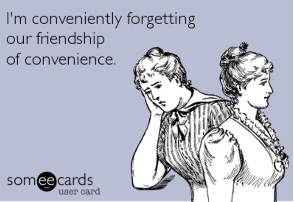 Come on, you can’t possibly be expected to have one best friend and one best friend only. What happens when they are out of town or too busy to hang out? Are you supposed to sit at home and cry? Are you in a relationship with them? Did you sign a pact in blood that you would never hang out with anyone else? I would answer for you and say no but I’ll just stick with I sure hope not. As you spread your wings, you are bound to meet other people and you will likely befriend them because that’s how we adapt to our surroundings and simply because you should. Don’t ever limit yourself to one friend, one slice of pizza, or one more "Orange is the New Black." Boxing yourself in does nothing but stagger your improvement. It is good to have connections and it is good to constantly build and improve yourself and anyone who is too petty or jealous to understand that can keep it moving and find another human to parasite on to (Bye Felicia).