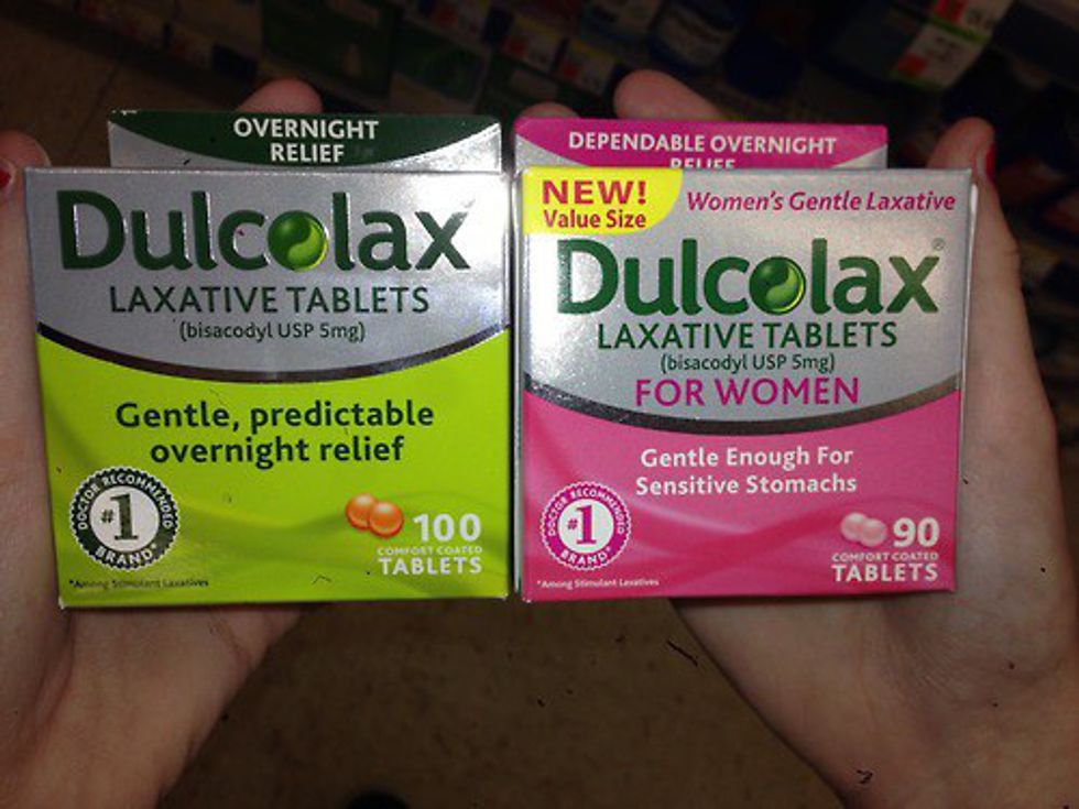 I don't know about you, but I'm certainly happy that I no longer have to take the same laxatives as men. They're way too powerful and strong for my sensitive, feminine stomach.