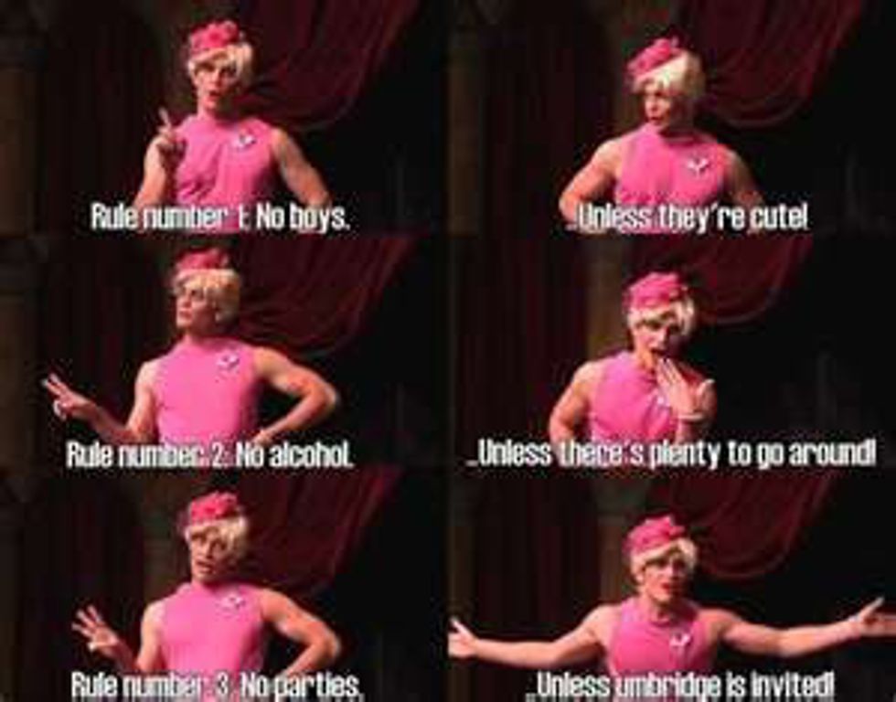 We all should live by these rules, Headmaster Umbridge teaching girls the three golden rules.