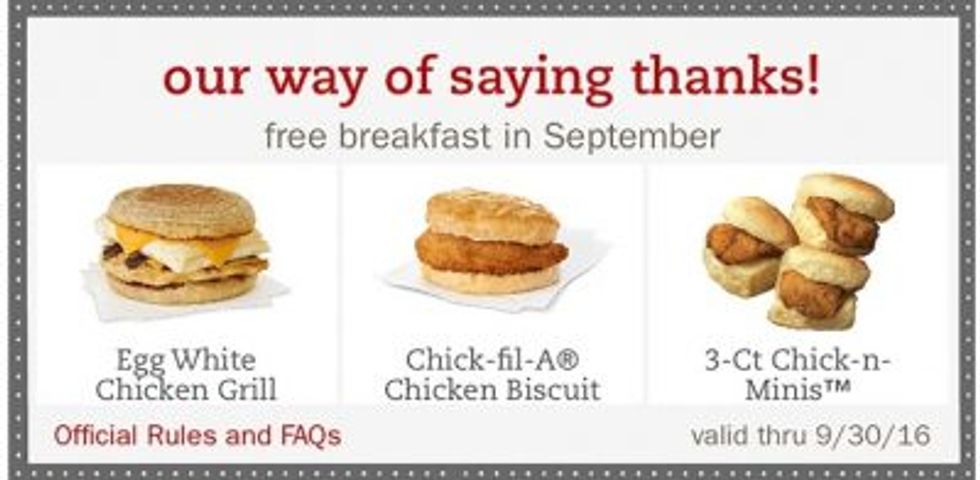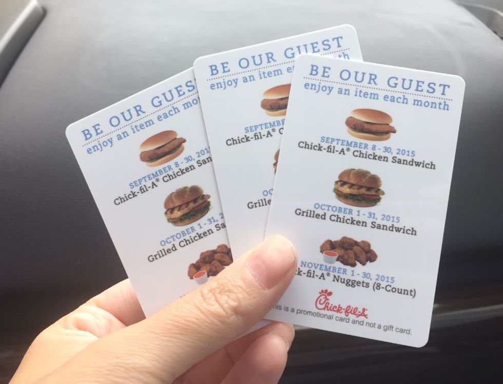 Chick-fil-A is always handing out free food coupons or having a special days where an specific item is free. As a college student, those are the best days and those coupons are probably the most valuable thing in my wallet.