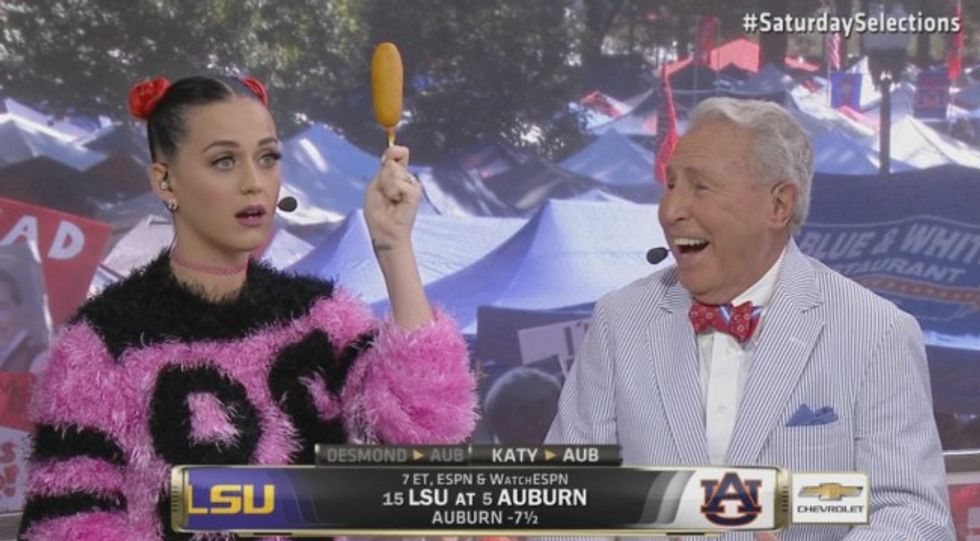 Katy Perry was seen everywhere on Game Day! From being the guest picker to starting the "Hotty Toddy” chant in the Grove. Not to mention she stormed the field from her front row seat and even dove off the bar at Funky’s to end her night. This girl has Rebel blood running through her veins. Katy was the only one who chose Ole Miss for the win and boy was she excited to rub it in Saban’s face on Twitter. HYDR to that one Katy Perry!