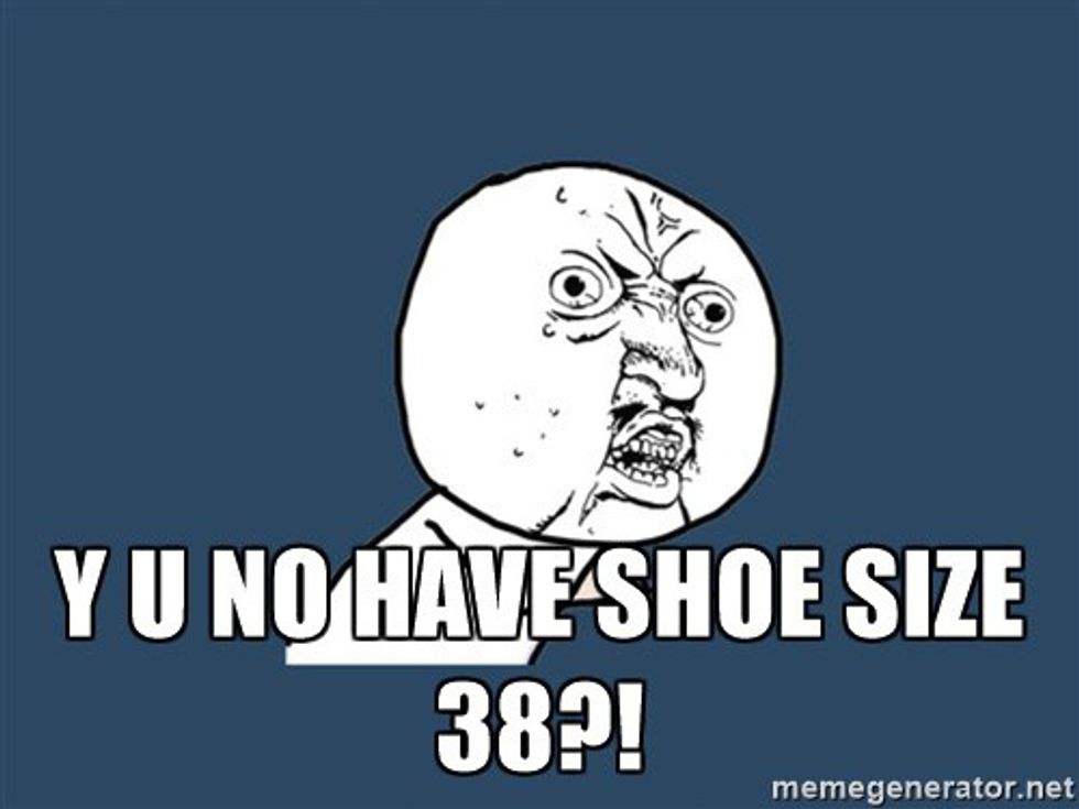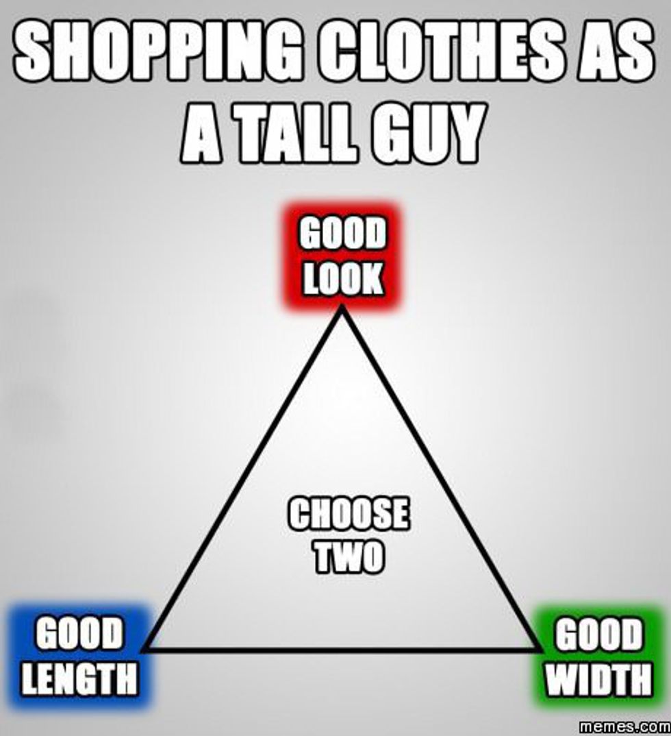 Chances are tall people have very odd sizes that retailers NEVER keep in-store. But don't worry, they'll "order your size and ship it for free, no worries" except you'll find out two weeks later that it still doesn't actually fit. Let's face it: the fashion industry doesn't account for freaks.