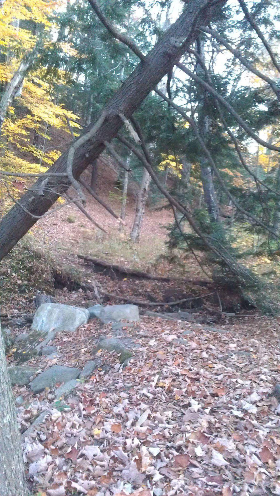 My college roommate and I took a crunchy-leaves walk through the woods on campus.