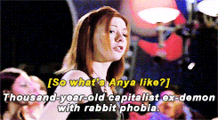 Anya was a vengeance demon that turned human, she loved money and had an unlikely fear of bunnies.