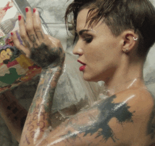 6. But all over your social media is the viral YouTube video of Ruby half-naked pouring water on herself in a bathtub to uncover her tattoos. And she looks incredible.